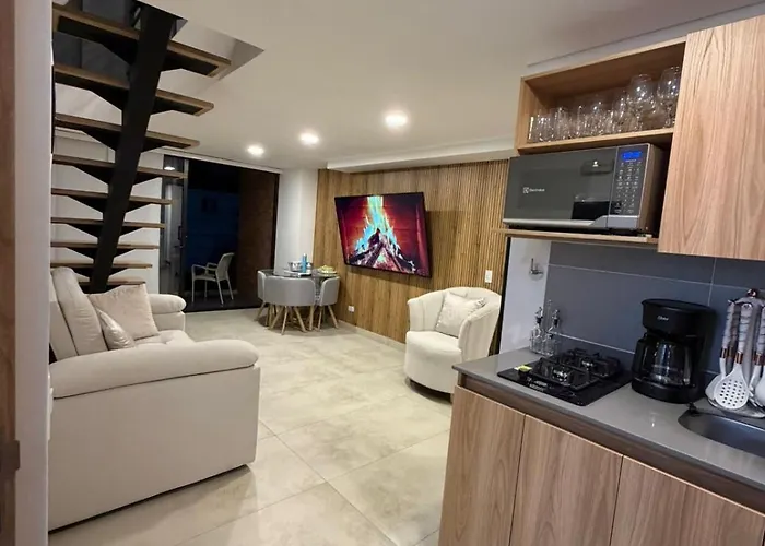 Loft Lujoso En Laureles Apartment Medellin is nestled in the Laureles - Estadio district, a 7-minute walk from the grill bar La Parrilla 80 33. Wi-Fi is available for guests' business or leisure needs.